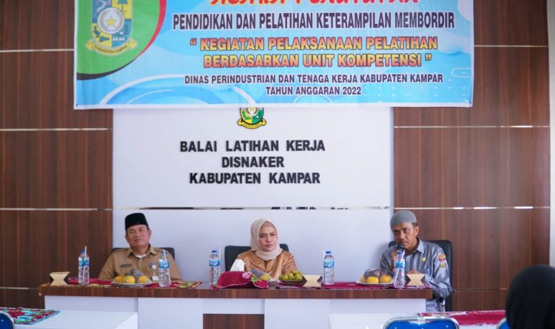 JakartaBicara, Kampar – Ketua umum Dewan Kerajinan Nasional Daerah (Deskranasda) Kabupaten Kampar Deswita Kamsol menutup pendidikan dan pelatihan keterampilan membordir angkatan pertama yang ditaja oleh Dinas Perindustrian dan Tenaga Kerja Kabupaten Kampar, yang di laksanakan di Balai Latihan Kerja Disnaker desa Ridan Permai Kecamatan Bangkinang Kota Selasa (5/7)