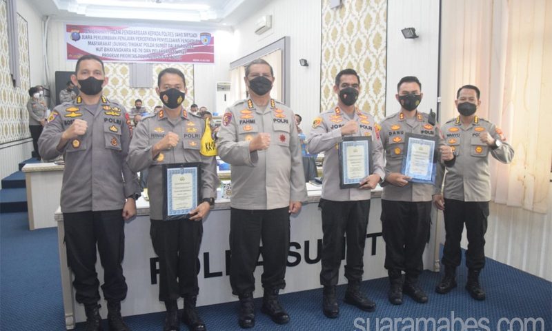 Pemberian Piagam Penghargaan kepada Polres Langkat karena berhasil meraih terbaik ke III sejajaran Polda Sumut dalam hal percepatan penyelesaian dumas (pengaduan masyarakat)