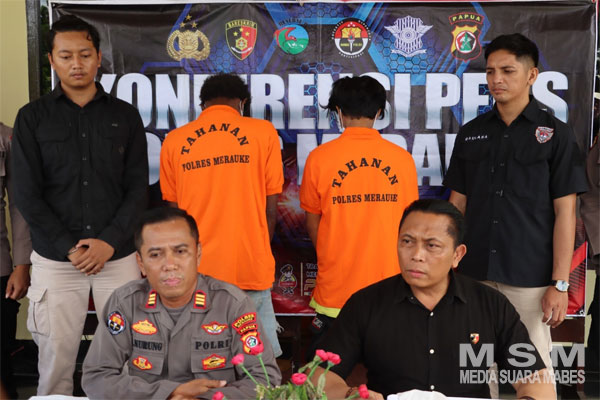 JakartaBicara, Merauke – Kasie Humas Polres Merauke AKP Ahmad Nurung, S.H didampingi KBO Satuan Reskrim Polres Merauke Ipda Eko Irianto, S.E lakukan konferensi pers atas keberhasilan pengungkapan kasus Curanmor, bertempat di Lobi Mapolres Merauke, Rabu (1/3).
