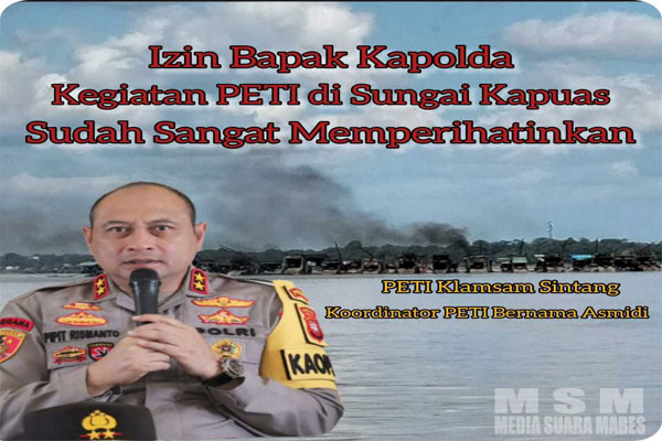Kegiatan PETI yang mereka kerjakan seolah-olah teroganisir, kita masih ingat Instruksi Bapak Kapolda Kalbar, Irjen Pol. Pipit Rismanto, S. I. K, beberapa bulan lalu berkomitmen akan memerangi pertambangan emas ilegal (pertambangan emas tanpa izin/PETI) di Kalbar. Menurutnya, selain merusak lingkungan, pertambangan emas ilegal juga menyumbang tingkat kematian dan berdampak negatif terhadap kesehatan, terutama stunting. ( 22/6/23 )