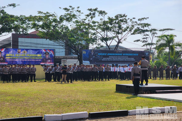 Apel gelar pasukan diawali dengan penghormatan pasukan kepada Pimpinan apel, laporan komandan apel, penyematan tanda pita operasi kepada perwakilan peserta. Melalui kegiatan apel gelar pasukan ini, Kapolres Singkawang membacakan amanat Kapolda Kalimantan Barat, Irjen Pol Pipit Rismanto.