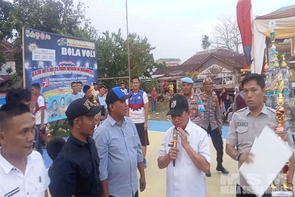 Saya sampaikan apresiasi dan penghargaan yang tinggi kepada seluruh panitia dan para atlit yang turut ambil bagian dalam Turnamen Volly Bal ini, Satu pelajaran yang bisa kita petik melalui kejuaraan ini, khususnya bagi seluruh pecinta olah raga Volly Bal, bahwa siapa yang paling siap lah yang akhirnya bisa mencapai prestasi optimal.tutup.Peratin.