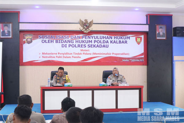 JakartaBicara, Sekadau Kalbar – Bidang Hukum (Bidkum) Polda Kalimantan Barat (Kalbar) mengadakan kegiatan sosialisasi dan penyuluhan hukum di aula Bhayangkara Patriatama Polres Sekadau pada Kamis (7/9/2023).