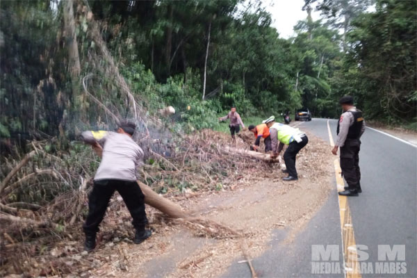 Kapolsek menambahkan Kepada pengemudi yang melintasi jalan tersebut tidak perlu khawatir lagi atas gangguan pohon tumbang serta menghimbau untuk tetap menjaga keselamatan saat berkendara.(Hijrah)