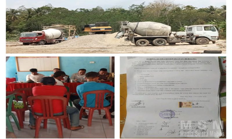 “Menanggapi waktu yang kemaren sempat sudah ngumpul di kantor desa dan sudah di buatkan beberapa Draf Poin-poinnya,lalu di lanjutkan pada waktu ba’da Isa yang di pasilitasi ketua BPD dalam hal ini bekerja sama dengan kami pemerintahan Desa,pak Bhabinkamtibmas,semalam ba’da Isa itu tempatnya di Saung Singgah dengan di hadiri para pihak,Terang Andes.