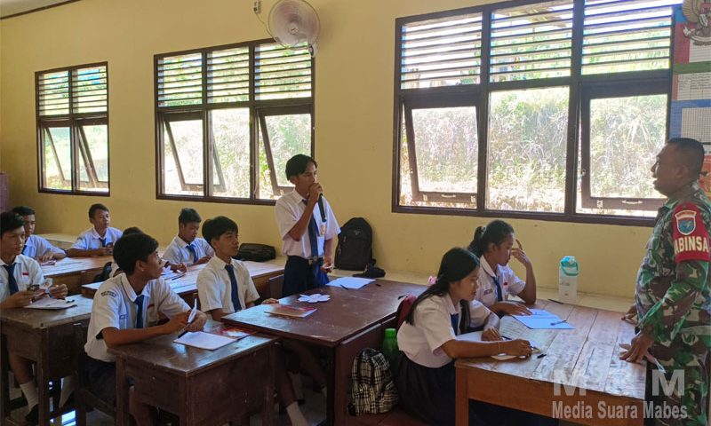 JakartaBicara, Bengkayang – Babinsa 1202-01/BKY sertu Indria melaksanakan edukasi butir butir Pancasila kepada siswa siswi SMPN 03 sui Betung yang bertempat di aula SMPN 03, jalan raya sungai Betung, desa sungai bangun kec sei Betung kab Bengkayang, Selasa (07/11/23)