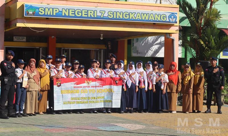 Demi menciptakan generasi penerus bangsa yang mengerti akan makna dari Pancasila Satbrimob Polda Kalbar terus melaksanakan kegiatan Brimob Go To School di SMP Negeri 7 Kota Singkawang. Kegiatan Brimob Go To School pagi hari ini dimulai dengan melaksanakan upacara bendera yang kemudian dilanjutkan dengan para personel memberikan edukasi tentang Pancasila kepada para murid.