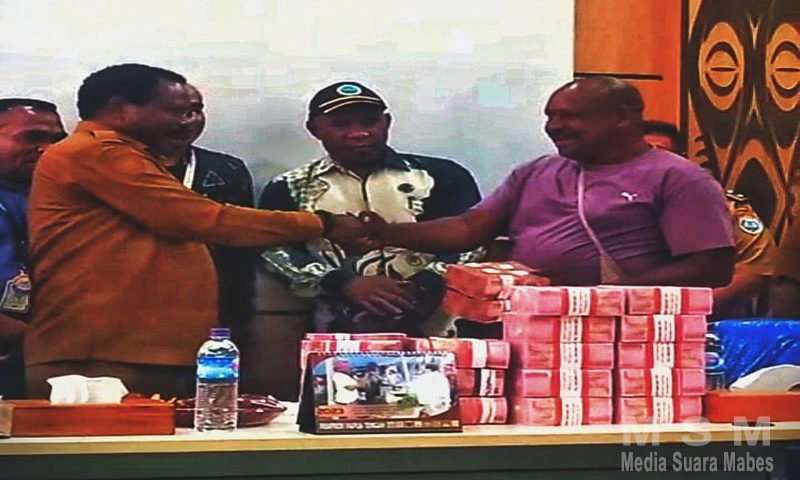 Pembayaran ganti rugi tanah sebesar” satu milyar tiga ratus sepuluh juta rupiah Rp. 1.310.000.000, diserahkan langsung oleh bupati nabire Mesak Magai, S.sos.,M.Si’, kepada keluarga Almarhum Robert Tomy Yamban yang di terima langsung oleh salah satu anak alm Semuel Yamban (47 ) Tahun,