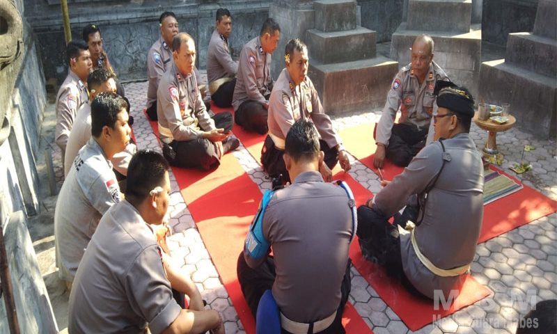 Sebelum memulai Dharma Wacana (Binrohtal Agama Hindu), para peserta terlebih dahulu melaksanakan persembahyangan yang dimulai dengan Puja Trisandya yang dipimpin oleh Kanit Binmas IPTU I Ketut Redana. Kemudian, Kapolsek Melaya AKP I Komang Muliyadi, S.H., M.M. memberikan Binrohtal kepada para peserta, termasuk para Kanit, Panit, Kasi, dan Anggota Polsek Melaya yang beragama Hindu.