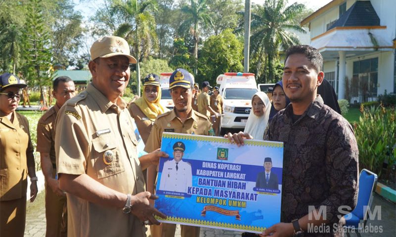 Penyerahan bantuan hiba dinas Koprasi kepada masyarakat khusus pelaku UMKM untuk pembangunan usaha secara simbolis.