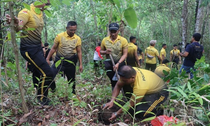 Dalam keterangannya, Kapolres mengatakan semua bibit pohon berhasil ditanam dengan aman dan tertib. “Penanaman dilakukan dengan memilih jenis pohon produktif dan pohon tanaman keras, termasuk Alpukat Kendil, Alpukat Ijo Bundar, Belimbing Dewi Murni, Durian Otong, Mangga Garifa Merah, Jambu Air Citra, Jambu Kristal, Klengkeng Kateki, Cempaka, Gmelina, dan Mahoni,” terangnya.