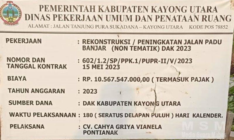 JakartaBicara, Kayong Utara – Pekerjaan peningkatan jalan Padu Banjar, yang di laksanakan oleh CV. Cahya Griya Vianela Pontiak, diduga keras telah menggunakan cuary tanah ilegal dan diduga (tidak memiliki ijin galian C), serta diduga penggelapan pajak MBLB.