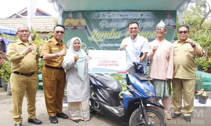 Penyerahan penghargaan berlangsung saat Puncak Acara Gerakan Menanam di Pekarangan (GEMPAR) Tahun 2023 di Halaman Kantor Distangan Kabupaten Beltim, Senin (27/11/23). Bupati Beltim Burhanudin menyerahkan langsung penghargaan kepada pihak-pihak yang dinilai berdedikasi bagi kegiatan Pekarangan Pangan Lestari (P2L) tersebut.