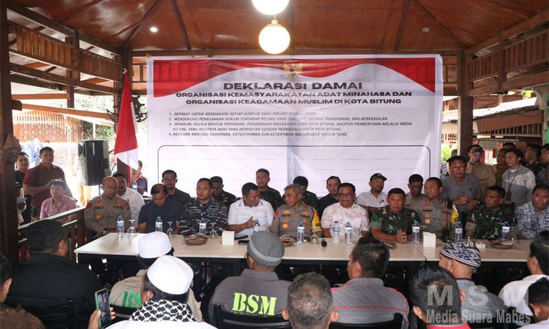 JakartaBicara, Sulut – Deklarasi damai digelorakan oleh perwakilan organisasi, kemasyarakatan Minahasa dan keagamaan muslim. Deklarasi ini juga menjadi komitmen Forkopimda yang disimbolkan dengan tandatangan deklarasi damai.