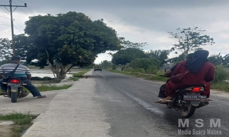 Menurut beberapa pengakuan beberapa orang warga pengguna jalan yang kesehariannya selalu melintasi jalan tersebut, pembangunan bahu jalan yang di kerjakan oleh salah seorang rekanan yang baru selesai di kerjakan sekitar sebulan yang lalu sangatlah janggal, karena bahu jalan tersebut di kerjakan sebelah kiri jalan.