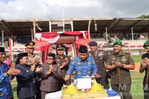 Wakapolres Jembrana Hadiri Peringatan HUT KORPRI Ke-52 dan HUT PGRI Ke-78 di Stadion Pecangakan