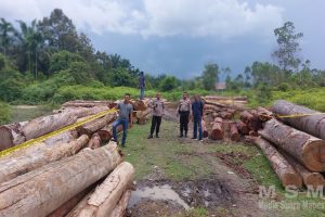 Kapolsek Kampar Kiri Temukan Tumpukan Kayu Log di Desa Kuntu Darussalam Kec. Kampar Kiri