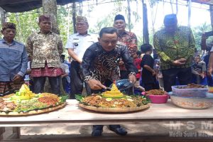 Ketua Adat serahkan mandat ke Kepala Desa Tamansari, dalam Peringatan 1 Tahun Tanah Tanjung Kemala kembali ke Rakyat