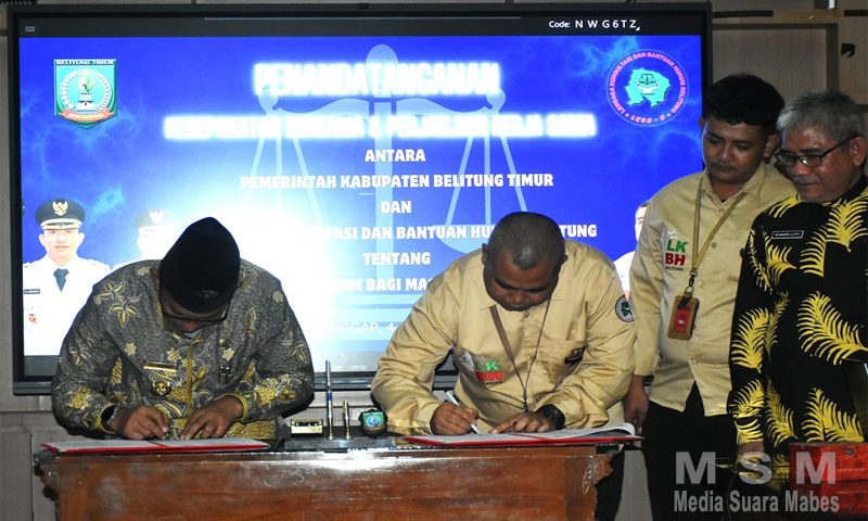 JakartaBicara, Beltim – Pemerintah Kabupaten Belitung Timur dan Lembaga Konsultasi dan Bantuan Hukum (LKBH) Belitung menandatangani Nota Kesepahaman (MoU) Penyediakan Bantuan Hukum bagi warga yang tidak mampu. Penandatangan dilakukan Bupati Beltim, Burhanudin dan Direktur LKBH Belitung, Heriyanto di Ruang Rapat Bupati, Kamis (4/7/2024).