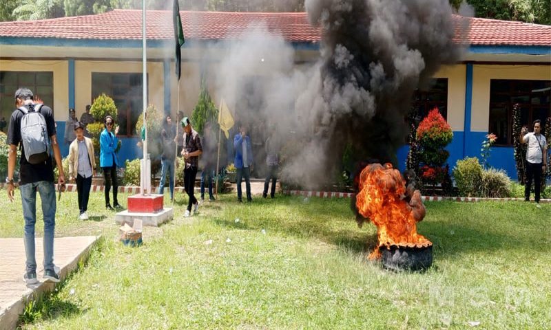 Massa aksi membakar ban di pelantaran Kantor dinas pendidikan dengan gemuruh sorak memanggil Kadis. Sempat terjadi cekcok antara staf Kadisdik Kab Mamasa bersama dengan massa aksi dengan pernyataan, “Kepala dinas pendidikan sedang ada kegiatan rapat dengan Sekda”.