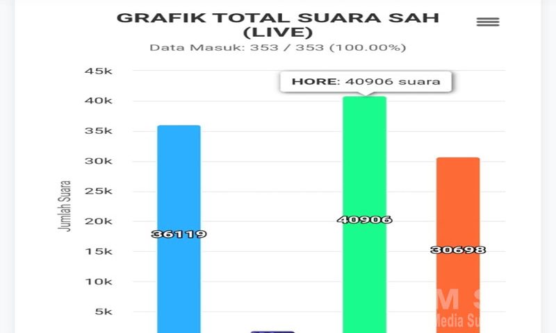 Ditambahkannya, perhitungan real count juga dapat diperbandingkan dengan sumber reel count lainnya. Selisihnya, kata dia, tidak jauh berbeda dan tetap dimenangkan oleh pasangan nomor 3 Oloan-Rebeka. Selisih suara antara pasangan nomor urut 3 dengan Paslon lain di bawahnya sekitar 4,5 persen lebih.