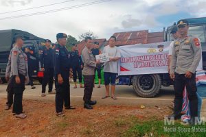 Pasca Banjir Polsek Menyuke Distribusikan Bantuan Sembako Dari Posko Penerimaan Bantuan Bencana Banjir Polres Landak
