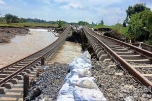 Sempat Beroperasi Sehari Rel Kereta Api Di Timur Stasiun Gubug kembali Jebol Diterjang Banjir