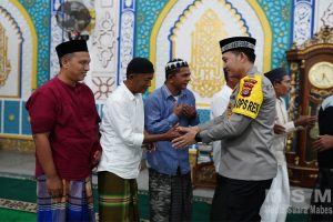 Kapolres Pidie Gelar Sholat Subuh Keliling di Mesjid Baitul Munawwarah Sosialisasikan Hotline 110