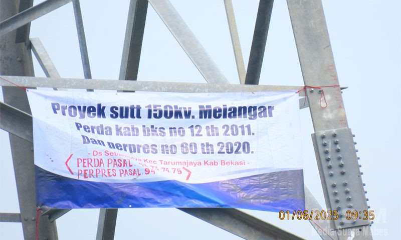 Berlanjutnya proyek SUTT 150 KV yang berada Di desa Setia Mulya kecamatan Tarumajaya, Warga memasang spanduk di atas Tower Simbol Matinya Keadilan, Tolak Pembangunan SUTT Warga kapling gapura Desa Setia Mulya Kecamatan Tarumajaya, Warga Rame Rame Turun ke Sawah Tolak proyek SUTT Di Desa Setia Mulya Tarumajaya, PLN Jalan Terus Warga bersikeras bahwa jalur SUTT terletak di area persawahan dan bukan di lokasi Pemukiman.