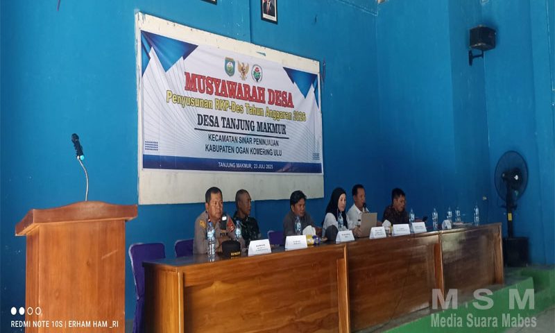 MediaSuaraMabes, Baturaja – Musyawarah Desa terkait Penyusunan Rencana Kerja Pemerintah Desa (RKPDes) Tahun Anggaran 2026 dan Daftar Usulan Rencana kerja Pemerintah Desa (DU-RKPDes) Tahun Anggaran 2026 Desa Tanjung makmur Kecamatan Sinar peninjauan OKU, Rabu 23/7/2025 di Aula Kantor Desa Tanjung makmur.