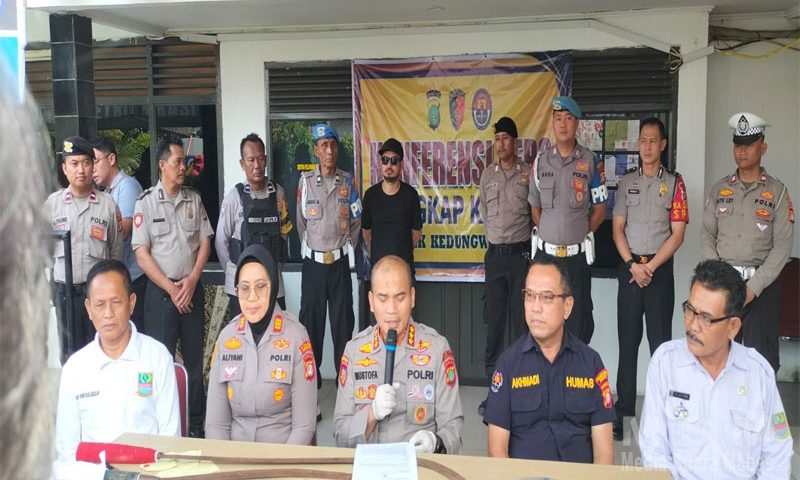 Dalam konferensi pers yang dihadiri jajaran kepolisian, perwakilan dinas pendidikan, psikolog anak UPTD PPA, serta awak media, Kapolres mengungkap kronologi aksi tawuran yang terjadi pada Sabtu sore, 19 Juli 2025. Tawuran tersebut melibatkan dua kelompok pelajar yang saling janji bertemu melalui aplikasi WhatsApp. Kedua kelompok yang disebut Geng Dhoephat dan Geng 50 Bekasiii bertemu di sekitar Stasiun Lemah Abang dan berlanjut bentrok hingga ke Jalan Raya Rengasbandung. Dalam peristiwa itu, satu pelajar dari Geng 50 Bekasiii berinisial M.A. mengalami luka bacok serius di bagian pinggang akibat sabetan senjata tajam.