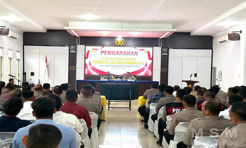 MediaSuaraMabes, Sigli – Wakapolda Aceh Brigjen Pol. Ari Wahyu Widodo, SIK, memberikan pengarahan langsung kepada personel Polres Pidie dalam kunjungan kerjanya, Selasa (22/7/2025). sore