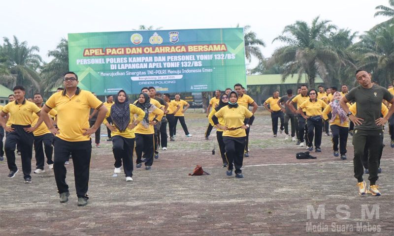 MediaSuaraMabes, Kampar – Solidaritas dan kebersamaan antara Tentara Nasional Indonesia (TNI) dan Kepolisian Republik Indonesia (Polri) di Kabupaten Kampar kembali terlihat jelas. Jumat (25/7/2025) pagi, Kapolres Kampar, AKBP Boby Putra Ramadhan, S dan Danyon 132/BS, Letkol Inf. Diyan Mantofani, bersama-sama memimpin apel pagi dan olahraga bersama di lapangan apel Yonif 132/BS. Kegiatan ini diikuti oleh seluruh personel Polres Kampar dan personel Yonif 132/BS, serta dihadiri oleh Wakapolres Kampar, Kompol Andi Cakra Putra, dan para Pejabat Utama (PJU) Polres Kampar, serta para perwira Yonif 132/BS.
