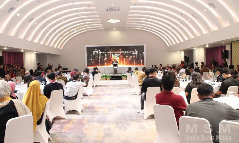 MediaSuaraMabes, Pontianak – Kepala Bidang Hubungan Masyarakat (Kabid Humas) Polda Kalimantan Barat, Kombespol Dr. Bayu Suseno S.H.,S.I.K.,M.M.,M.H., menghadiri Malam Puncak Hari Ulang Tahun (HUT) ke-18 RUAI TV dan peluncuran program “RUAI TV PEDULI” di Ballroom Cendana, Hotel Mercure Pontianak, Sabtu (23/8/2025) malam.