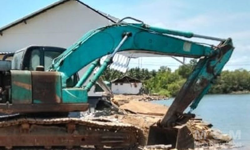 Dari hasil penelusuran, pekerjaan tersebut dilakukan oleh pihak pengelola tambak udang yang berada di sekitar bantaran sungai. Langkah ini diambil setelah sebagian bibir sungai di lokasi tersebut sempat jebol diterjang banjir beberapa waktu lalu, mengakibatkan kerusakan pada area tambak. Untuk mengantisipasi kejadian serupa, pihak tambak kemudian membangun tanggul dengan tumpukan batu bolder dan pengurugan tanah di tepi aliran sungai.