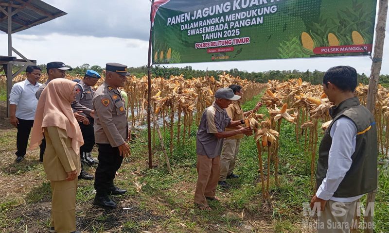 MediaSuaraMabes, Babel – Kegiatan Panen Jagung Serentak Kuartal III Tahun 2025 sukses digelar di lahan Kelompok Tani (Poktan) Makmur Barokah, Desa Kelubi, Kecamatan Manggar, Kabupaten Belitung Timur, pada Senin (20/10). Kegiatan ini merupakan bukti nyata kontribusi sektor pertanian dalam memperkuat ketahanan pangan daerah.