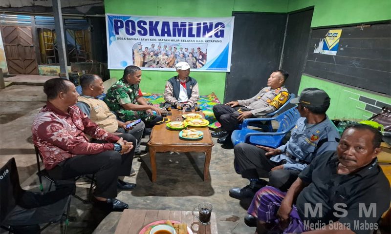 MediaSuaraMabes, Ketapang Kalbar — Dalam rangka meningkatkan sinergitas dan menjaga situasi keamanan dan ketertiban masyarakat (Kamtibmas), Kapolsek Matan Hilir Selatan, IPTU Jumadi Hutabarat, S.H., bersama Danramil Matan Hilir Selatan, Peltu Baharudin, dan Camat Matan Hilir Selatan, Abdulrani, S.Pd., melaksanakan kegiatan sambang ke Pos Keamanan Lingkungan (Pos Kamling) yang terletak di Desa Sungai Jawi, Kecamatan Matan Hilir Selatan, Kabupaten Ketapang, Sabtu 18 Oktober 2025.