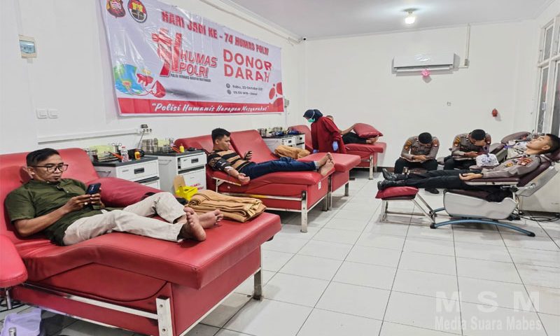 ”Pelaksanaan donor darah ini adalah rangkaian dari peringatan HUT Humas Polri yang ke-74. Kegiatan ini juga dilaksanakan serentak di Polres-Polres jajaran.”