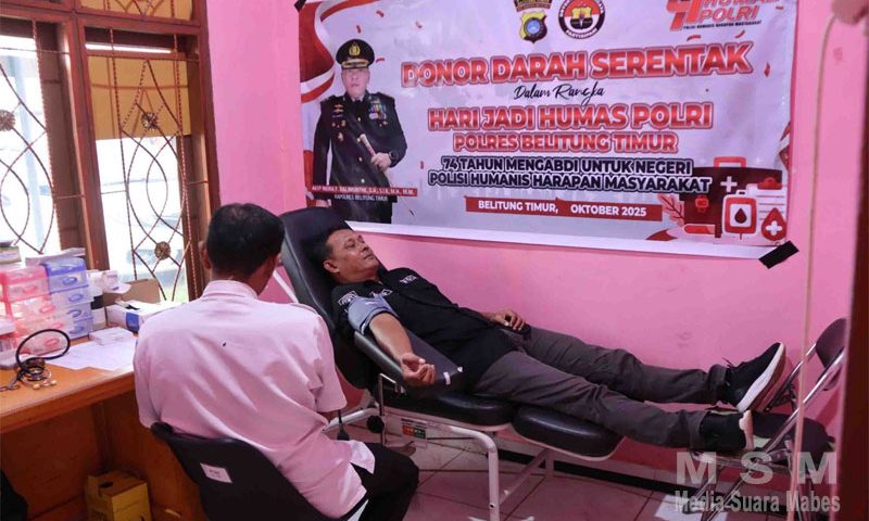 MediaSuaraMabes, Babel – Polres Belitung Timur menggelar kegiatan Bakti Kesehatan donor darah yang dilaksanakan Di Unit Transfusi Darah RSUD Muhammad Zein Kabupaten Belitung Timur. Rabu (22/10/2025).