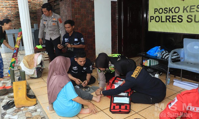 Berikan Pelayanan Kesehatan di Tengah Korban Bencana Banjir oleh Dokkes Polres Sukabumi