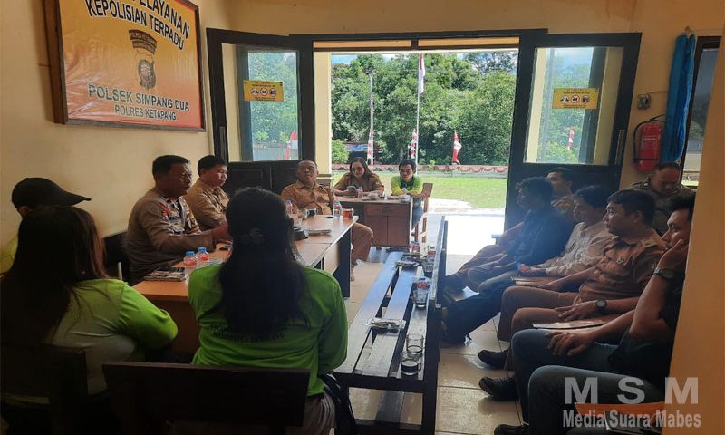 MediaSuaraMabes, Ketapang Kalbar — Kapolsek Simpang Dua IPDA Slamet Santoso bersama unsur Forum Komunikasi Pimpinan Kecamatan (Forkopincam) Kecamatan Simpang Dua melaksanakan kegiatan “Jum’at Curhat” yang berlangsung di Aula Polsek Simpang Dua, Jum’at 31 Oktober 2025.