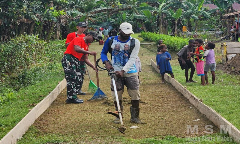 MediaSuaraMabes, Timika Papaua Tengah – Satgas Pam Obvitnas Yonif 301/PKS Pos Jitas Dalam rangka meningkatkan kepedulian masyarakat terhadap pentingnya kebersihan dan semangat gotong royong, menggelar kegiatan Karya Bakti bersama masyarakat serta pembagian sembako di Kampung Kanmapri, Distrik Jita, Kabupaten Timika, Provinsi Papua Tengah. Selasa (04/11/2025)