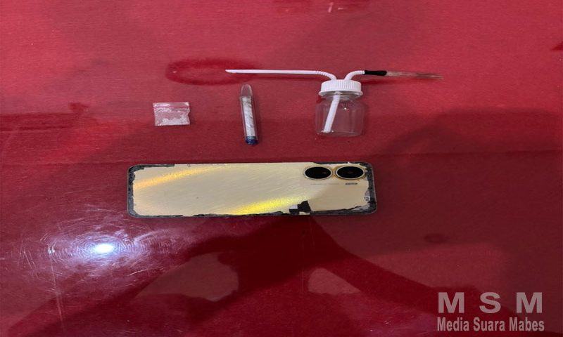 “ Dari informasi yang disampaikan warga, kami langsung melakukan penyelidikan dilapangan dan benar saja, saat pelaku MF ini kita amankan, turut juga kita temukan dari tangan pelaku sejumlah barang bukti berupa 9 kantong klip transparan kecil berisi serbuk kristal diduga narkotika jenis sabu dengan berat total 4,23 gram brutto, 2 buah timbangan digital, 1 buah pipet modifikasi sendok sabu, 2 buah dompet serta 1 buah handphone ” Ujar IPTU Dewa Made Surita.