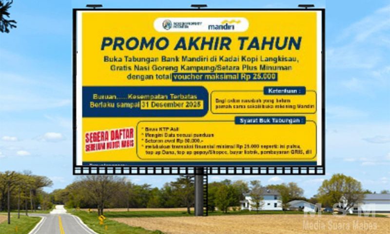 Tujuan promo akhir tahun ini adalah agar masyarakat bisa menerima manfaat mulai dari menabung, dan transaksi kebutuhan sehari hari melalui Rekening tabungan Bank Mandiri. Baik keperluan pribadi, transaksi bisnis (UMKM), dan pembelian secara elektronik. Besok Senin (24/11/2025) akan kita Launching di Kadai Kopi Langkisau Jln Sudirman Ujung, Sudirman Business Park No.12, ujar Herly.
