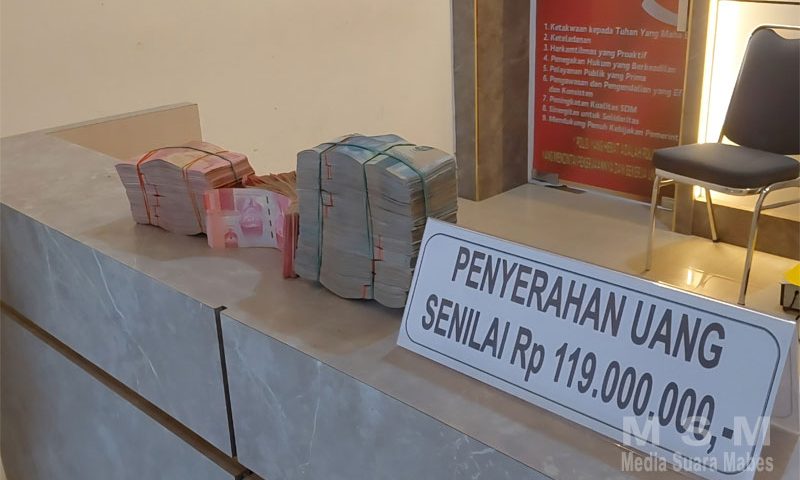 Selain upaya penegakan hukum, penyidik Subdit III Tipidkor juga turut melakukan upaya pemulihan atau pengembalian kerugian negara dengan menerima penyerahan uang sebesar 119 juta rupiah.