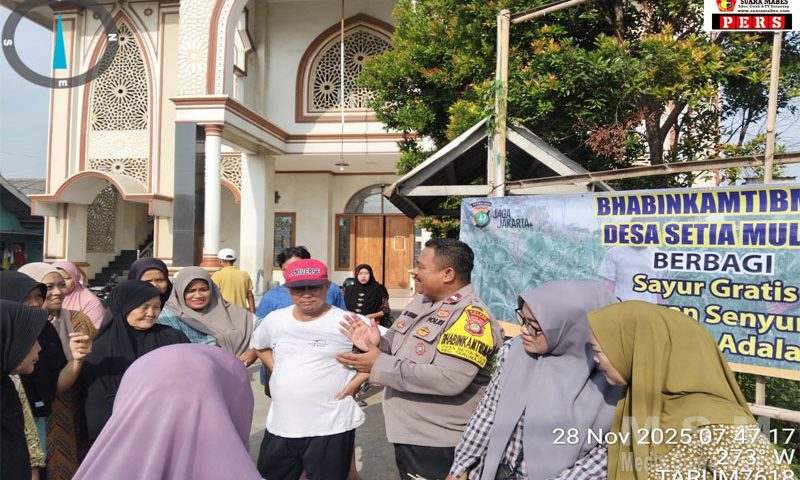 MediaSuaraMabes, Bekasi – Senyuman warga tampak menghiasi wilayah kampung pomahan bulak RT 02 RW 18, Dusun 03, Desa Setiamulya, pada Jumat pagi. Babinkamtibmas Desa Setiamulya, Aipda Arif Pramono, kembali menggelar kegiatan “Pasar Jimpul Keliling Pak Babin”, sebuah program berbagi sayur mayur gratis kepada masyarakat.