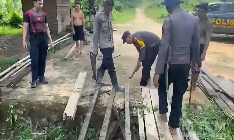Kapolres Mempawah, AKBP Jonathan David, menjelaskan bahwa Polres Mempawah bersama warga secara gotong royong memperbaiki jembatan demi keselamatan anak-anak yang akan bersekolah.