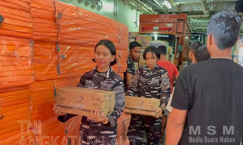 MediaSuaraMabes, Jakarta – TNI Angkatan Laut melalui unsur KRI Semarang-594 yang beroperasi di wilayah perairan Sumatera Utara, berhasil melaksanakan debarkasi atau penurunan ratusan ton bantuan logistik kemanusiaan untuk disalurkan kepada masyarakat di Sibolga. Senin (08/12). Dalam kesempatan ini pelaksanaannya ditinjau oleh Komandan Kodaeral II Laksamana Muda TNI Sarimpunan Tanjung.