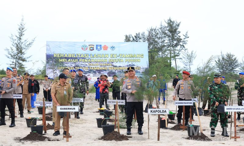 Irjen Pol Viktor mengatakan penanaman pohon ini dilaksanakan untuk rehabilitasi lahan eks tambang dalam rangka Operasi Tertib Tambang Menumbing 2025.
