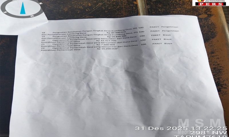 Berdasarkan pantauan awak media di lapangan, hingga akhir tahun 2023 belum terlihat adanya papan informasi publik yang memuat rincian penggunaan Dana Desa, sebagaimana diamanatkan dalam peraturan perundang-undangan. Kondisi tersebut menimbulkan tanda tanya serta keresahan di tengah masyarakat.